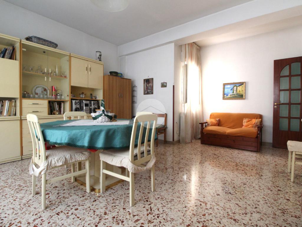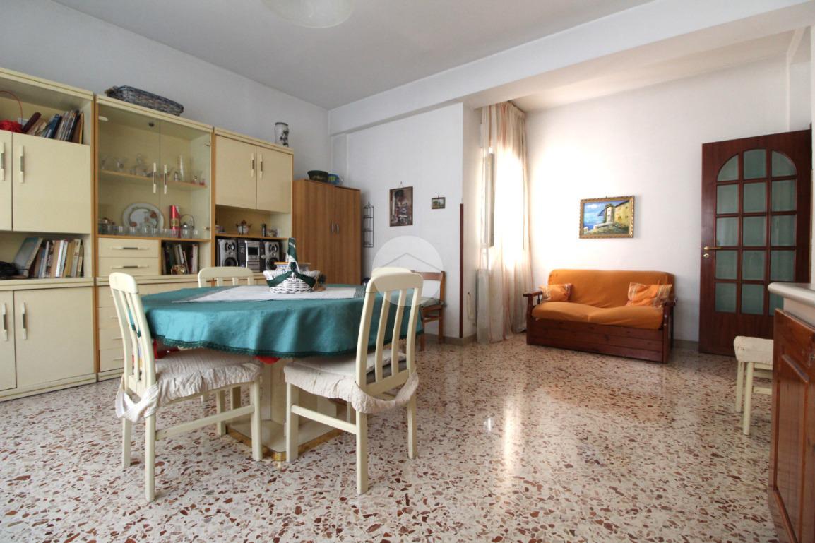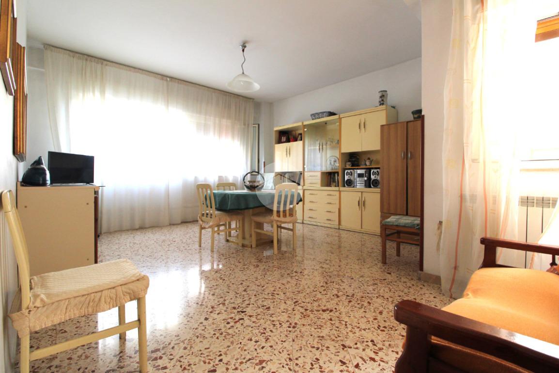 L'immobile si apre su un elegante soggiorno doppio, perfettamente illuminato grazie a una finestra e un balcone su prospetto principale, ideale per accogliere ospiti o vivere momenti in famiglia.