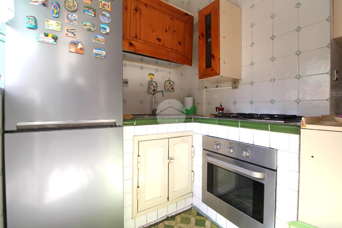 La cucina è abitabile e dotata di veranda chiusa, perfetta come zona lavanderia.