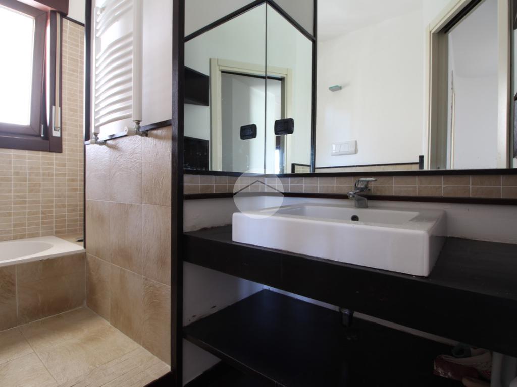 Un disimpegno conduce alla zona notte, dove troviamo: Due bagni, uno con vasca impreziosita da rivestimento in pietra tagliata, l’altro con doccia, sanitari sospesi e armadietto a muro. Camera matrimoniale e Cameretta con armadio a muro.