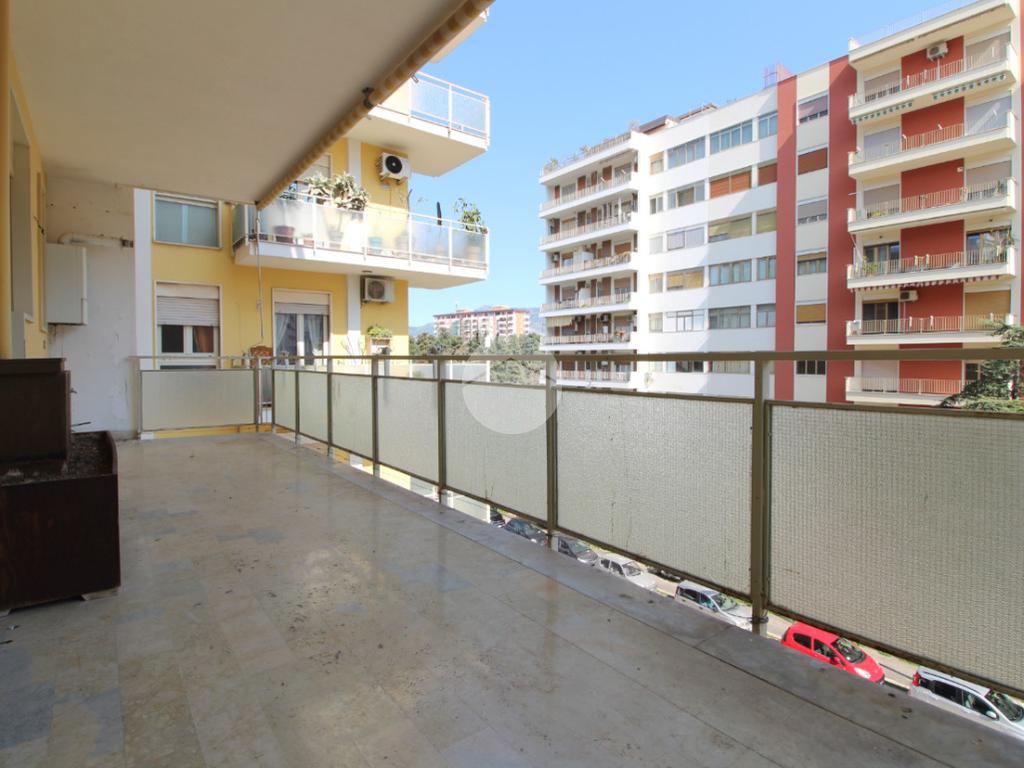 L’immobile si trova al terzo piano con ascensore. All’ingresso si viene accolti da un ampio e luminoso soggiorno, con una grande finestra e un’uscita su un balcone terrazzato.